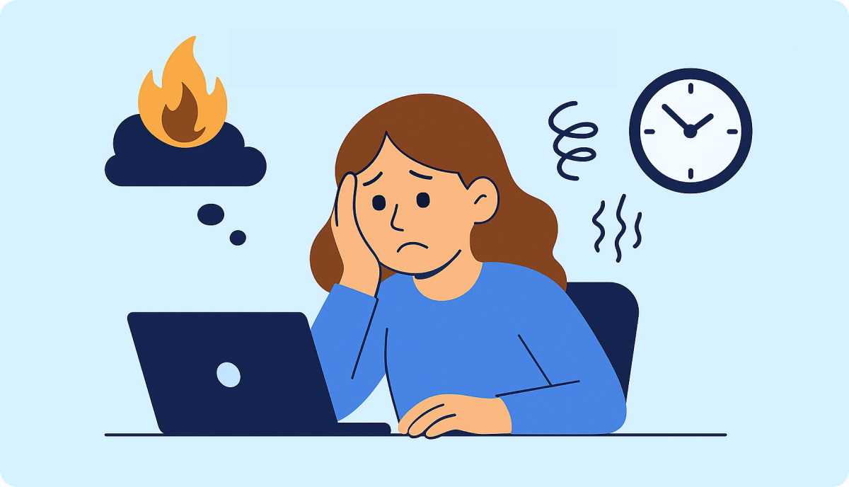 Выгорание развивается не резко. Сначала появляются усталость и раздражительность, позже — ощущение бессмысленности, потеря мотивации, дистанцирование от задач и людей. В тяжелых случаях человек перестает справляться даже с привычными делами.