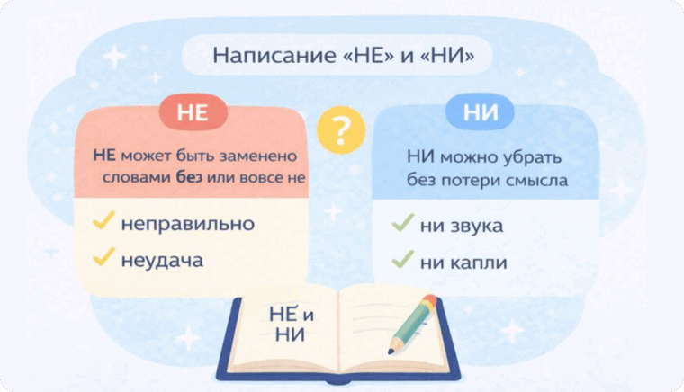 Короткая справка при написании «НЕ» и «НИ»