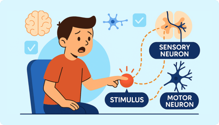 Рефлекс — это автоматическая, быстрая реакция организма на раздражитель. Она происходит без участия сознания. Примеры: отдергивание руки от горячего, моргание при ярком свете, кашель при пыли.