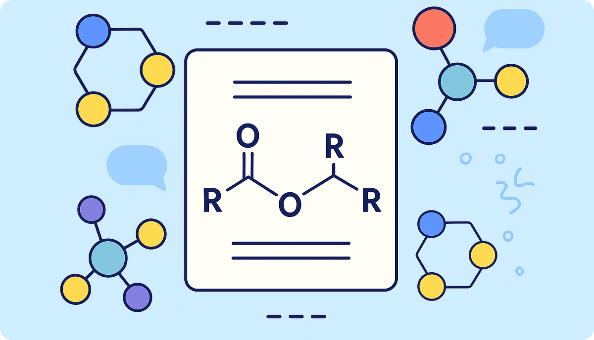 Сложные эфиры легко узнаются по общей формуле RCOOR′, где R — часть от кислоты, а R′ — часть от спирта. Именно такое строение определяет их запахи, летучесть и химические свойства.