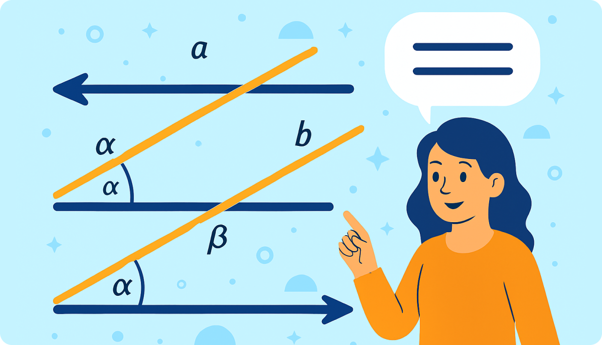Два внутренних угла, расположенные по одну сторону секущей, дают в сумме 180°. Это помогает доказывать параллельность. - Одинаковый наклон