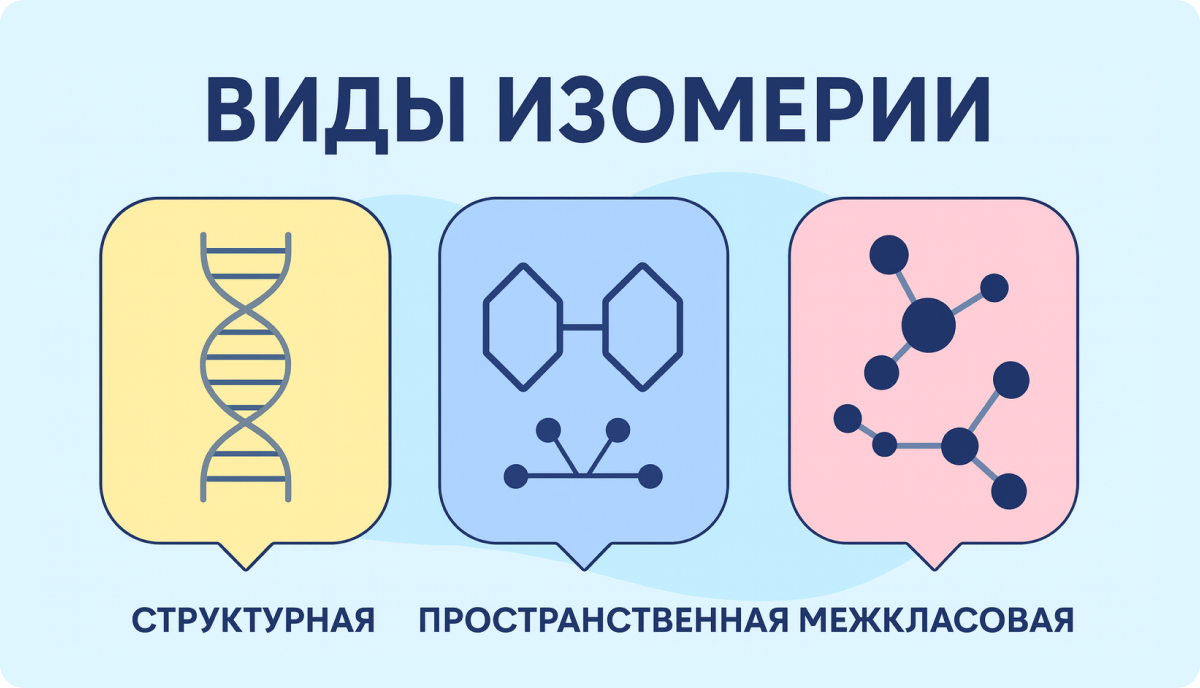 Изомерия — это явление, при котором вещества имеют одинаковый качественный и количественный состав, но различаются строением или пространственным расположением атомов.